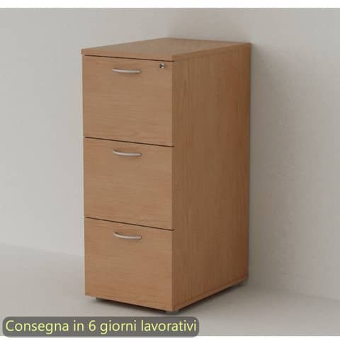 Mobile classificatore per cartelle sospese interasse 33 e 39 cm. Tre pratici cassetti di cui uno con serratura per una sicura archiviazione di documenti. Diensioni L. 49 x P. 55 x H. 107,2 cm. Materiale melaminico bilaminato Classe E1. Chiusura centralizzata. Meccanismo antiribaltamento. Piedini regolabili in altezza. Retro rifinito nello stesso colore della struttura. La cassettiera viene venduta e consegnata smontata. In dotazione libretto istruzioni per un semplice montaggio. Produzione certificata conforme alle procedure UNI EN ISO 9001. Certificazioni FSC e PEFC. Colore noce chiaro.