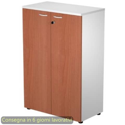 Mobile medio della linea Presto, una linea operativa contemporanea progettata per un utilizzo quotidiano ed intensivo in grado di soddisfare tutte le esigenze funzionali ed estetiche. La gamma completa degli elementi permette di allestire ogni ambiente di lavoro, personalizzandolo con stile. Scrivanie con dimensioni conformi alle normative sulla sicurezza dei posti di lavoro in ufficio. Dimensioni L. 80 x P. 44 x H. 120 cm. Top sp. 22 mm. Struttura, ante e ripiani sp. 18 mm. Due ripiani regolabili in altezza con un sistema di bloccaggio nella posizione desiderata. Ante in melaminico con una pratica serratura. Il mobile, rifinito posteriormente nello stesso colore della struttura, pu? essere utilizzato come parete divisoria. Dotato di piedini regolabili in altezza per un perfetto livellamento sul pavimento. Imballi in cartone riciclato alto spessore a tutela dell?ambiente. Produzione certificata conforme alle procedure UNI EN ISO 9001. Certificazioni FSC e PEFC. Struttura color grigio alluminio, ante di colore ciliegio.