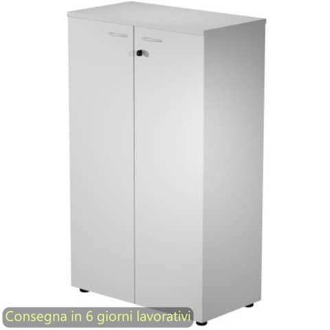 Mobile medio della linea Presto, una linea operativa contemporanea progettata per un utilizzo quotidiano ed intensivo in grado di soddisfare tutte le esigenze funzionali ed estetiche. La gamma completa degli elementi permette di allestire ogni ambiente di lavoro, personalizzandolo con stile. Scrivanie con dimensioni conformi alle normative sulla sicurezza dei posti di lavoro in ufficio. Dimensioni L. 80 x P. 44 x H. 120 cm. Top sp. 22 mm. Struttura, ante e ripiani sp. 18 mm. Due ripiani regolabili in altezza con un sistema di bloccaggio nella posizione desiderata. Ante in melaminico con una pratica serratura. Il mobile, rifinito posteriormente nello stesso colore della struttura, pu? essere utilizzato come parete divisoria. Dotato di piedini regolabili in altezza per un perfetto livellamento sul pavimento. Imballi in cartone riciclato alto spessore a tutela dell?ambiente. Produzione certificata conforme alle procedure UNI EN ISO 9001. Certificazioni FSC e PEFC. Struttura color grigio alluminio, ante di colore grigio.