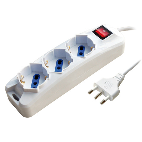 Multipresa a 3 Posizioni 10/16A Schuko/Bipasso. Dotata interruttore luminoso. Tensione: 250 V. Potenza: 3500 W. Spina 16A 2P+T. Dimensioni cavo: 3 x 1 mm? x 1.5 m. Colore bianco.