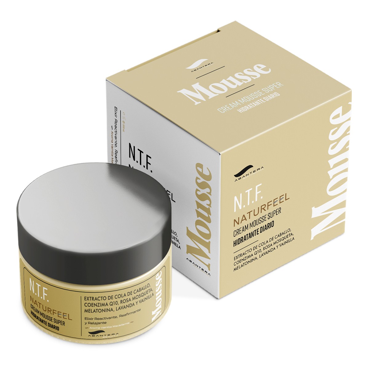 La Crema Naturfeel 300gr di Abantera è una mousse idratante quotidiana, arricchita con estratti naturali di Equiseto, Coenzima Q10, Rosa Mosqueta, Melatonina, Lavanda e Vaniglia. Con un profumo avvolgente di vaniglia e macadamia, offre un trattamento completo per rivitalizzare, rassodare e rilassare la pelle, lasciandola morbida e luminosa.
