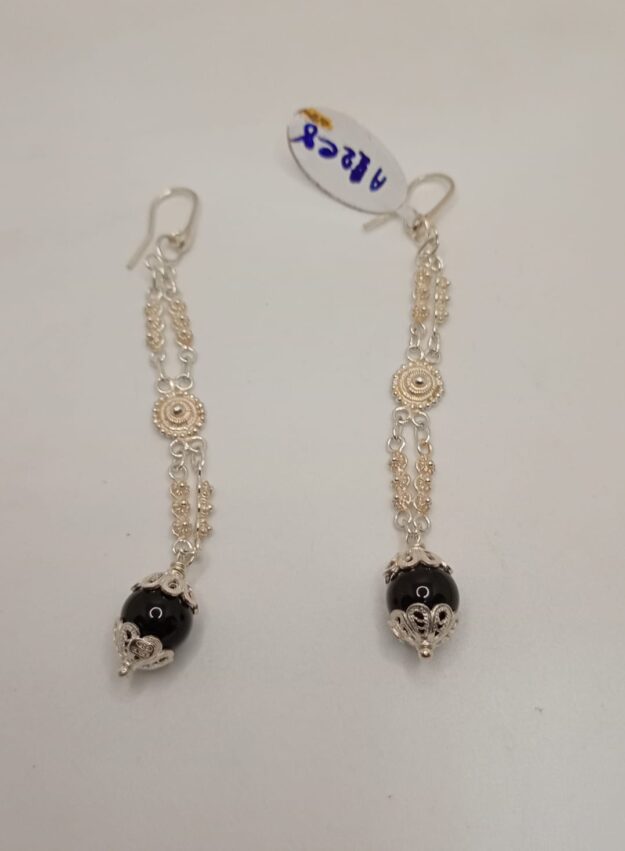 Orecchini Lunghi in Argento Bianco con Onice Elegante