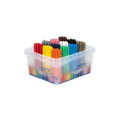 Pastelli a cera Giotto Strong Schoolpack. Disponibili in confezione da 144 pezzi assortiti in 12 colori.