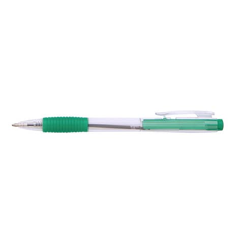 Penna a sfera a scatto. Punta 0,7 mm, retrattile con ricarica. Involucro appositamente progettato ed ergonomico. Impugnatura in gomma per una scrittura confortevole. Involucro trasparente per controllare il grado di consumo di inchiostro. Inchiostro impermeabile. Tratto 0,5 mm. Colore verde.