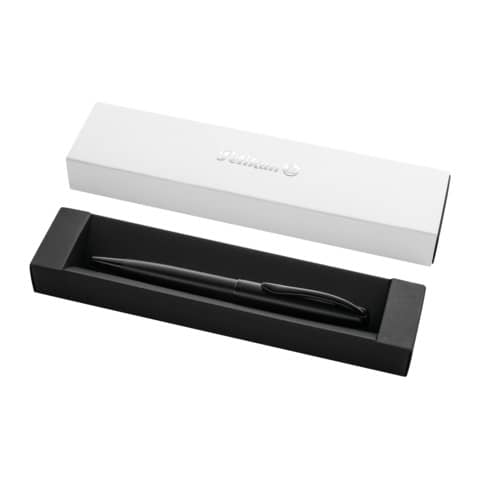 L’elegante penna a sfera Jazz? in metallo si distingue per le sue linee morbide che rendono la penna leggera e vivace. Il fusto superiore e inferiore laccati perlati si armonizzano perfettamente con la punta, l’anello e la clip colorati tono su tono. La tipica clip a forma di becco Pelikan – caricata a molla e quindi particolarmente robusta. La penna a sfera con meccanismo a rotazione – dotata di una ricarica king-size e include un inchiostro di colore blu conforme alla norma ISO 12757-2. La penna a sfera in cofanetto della linea Jazz? Noble Elegance di Pelikan sono una fantastica idea regalo senza tempo. Dimensioni cofanetto regalo 18,5 x 4,6 x 2,3 cm. Colore nero.