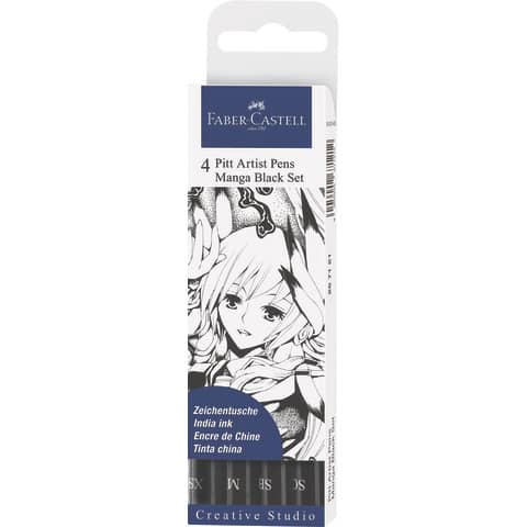 Penna inchiostro pigmentato Faber Castell Pitt Artist conf. 4 pezzi – Manga set nero – 267121