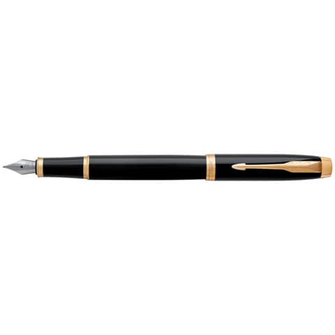Finitura in lacca nera lucida ad alta brillantezza con parti decorative placcate in oro. In confezione regalo Parker di alta qualità . |