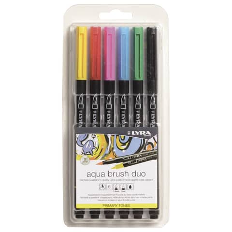 Pennarelli AQUA BRUSH DUO Set 6 pennarelli confezione appendibile Lyra colori primari – L6521060