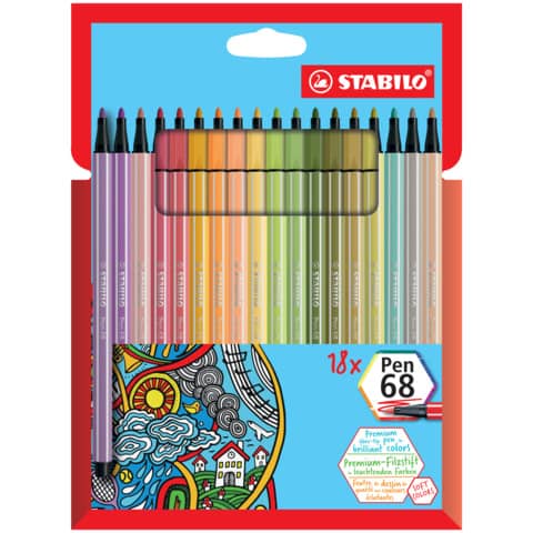 Pennarelli Stabilo Pen 68 tratto 1 mm scatola in cartone 18 colori assortiti 6818-22-6