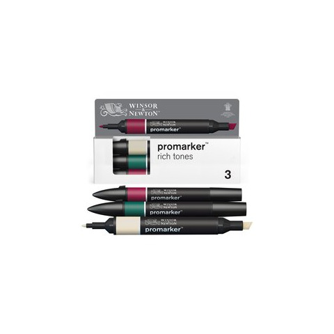 Set di pennarelli Promarker professionali a due punte, una fine per i dettagli e una larga e bisellata per colorare zone più estese. L’inchiostro non tossico a base di coloranti e alcol offre una finitura omogenea e senza striature. Confezione composta da tre pennarelli con tonalità intense.