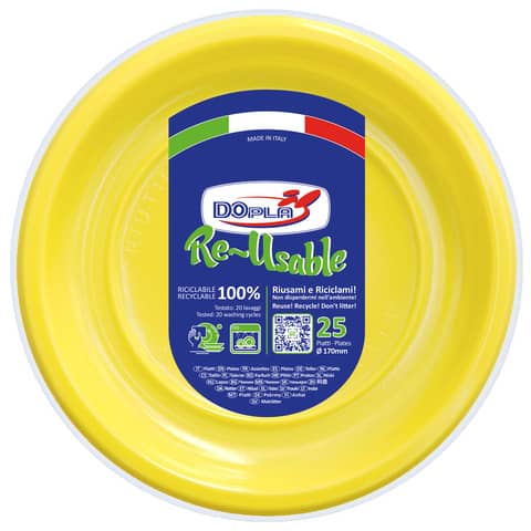 Piatti frutta gialli in polistirene h.18 mm conf. 25 pz Dopla Reusable – 170 mm 11754