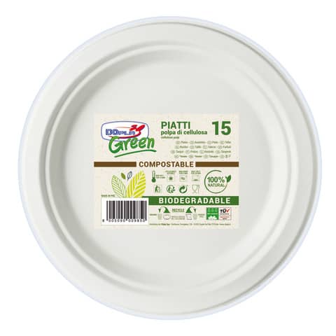 Piatti frutta monouso in polpa di cellulosa Dopla Green d. 175 mm conf. 15 pezzi – 07742