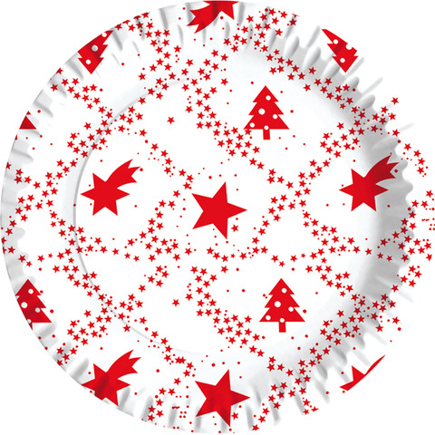 Piatti piani carta fibra vergine Dopla Red Xmas – 230 mm – conf. 10 pz – 11816