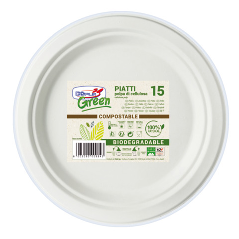 Piatti piani in polpa Dopla Green – 220 mm bianco – conf. 15 pz – 07741