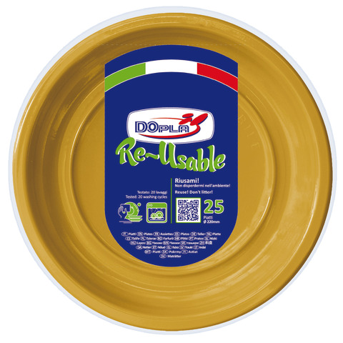 Piatti piani in PS Dopla Reusable – 220 mm oro – conf. 25 pz – 11858