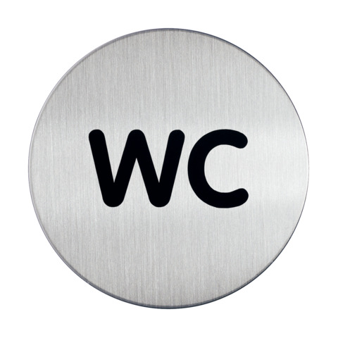 Pittogramma tondo – 83 mm, con scritta ”WC”. In acciaio inossidabile spazzolato di alta qualità. Dotati di potente adesivo sul retro che assicura un’applicazione duratura nel tempo. Serigrafie impresse a laser, resistenti e antiabrasione.