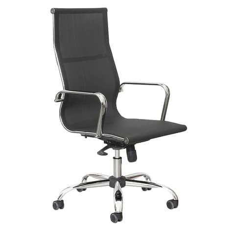 Poltrona direzionale girevole Pollux Space PXP, struttura portante in rete, base in acciaio tubolare, schienale alto e fisso. Seduta con elevazione a gas, meccanismo con 4 blocchi e fulcro avanzato, regolazione del peso. Pollux Space, una poltrona tecnologicamente avanzata con seduta e schienale in rete metallica ergonomica e traspirante, di colore nero.