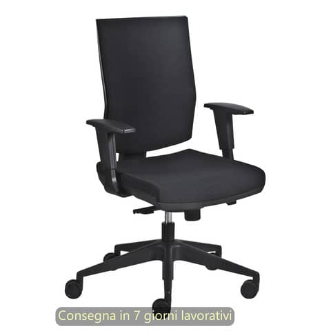 Poltrona semi-direzionale Aura Syncro con schienale ergonomico e in tessuto imbottito ignifugo. Colore nero. Meccanismo Syncro bloccabile in 4 posizioni, regolabile in altezza con cremagliera up-down. Regolazione sincronizzata dell?inclinazione del sedile e dello schienale. Regolazione di tensione e sicurezza anti-ritorno. Braccioli regolabili in altezza. Sedile regolabile in altezza da 39 a 51 cm, imbottito ad alta densit? con elegante tappezzeria ignifuga con fasce laterale cucite. Dimensioni 68 x 68 x 120 cm. Misure sedile L. 50 x P. 47 cm. Misure schienale L. 45 x H. 55 cm. Ruote piroettanti D 65 mm. Base D 700 mm in nylon nero. Sedile con interno in PP con barre di rinforzo in acciaio, imbottitura densit? 60 kg/m spessore 50 mm. Carter in PP antigraffio nero. Struttura schienale in poliammide nero, imbottitura densit? 40 kg/m2 di spessore 20 mm. Certificata EN 1335 1.2.3 tipo A. Peso 18 kg, utilizzo sino a 120 kg – ore/giorno 8. A richiesta ordinabile nella versione No-Fire Ignifuga certificata ed Omologata CL 1 IM dal Ministero dell’Interno. Prodotto 100% Made in Italy. La garanzia – valida nell?ambito di un utilizzo normale e corretto della sedia e non si applica a quelle parti che sono naturalmente soggette ad usura, come i rivestimenti, le imbottiture e le superfici verniciate. La garanzia si applica a tutte quelle parti della sedia che ne garantiscono la funzionalit?, come ruote, base, gas, meccanismi. Una qualsiasi manomissione o tentativo di riparazione da parte di persone non specializzate fa decadere automaticamente la garanzia. Questa garanzia non riconosce alcuna responsabilit? o diritto di indennizzo per tutti gli eventuali danni, diretti o indiretti, causati da merce difettosa.