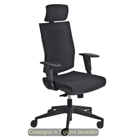 Poltrona semi-direzionale Aura Syncro Seditaly tessuto ignifugo nero braccioli regolabili e poggiatesta – AUGPS1SEGB833