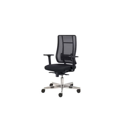 Poltrona semi-direzionale Liberty Syncro ergonomica con braccioli regolabili e base in alluminio spazzolato. Colore nero. Meccanismo Syncro regolabile in 4 posizioni con regolazione di tensione e sicurezza anti-shock. Schienale ergonomico a rete con poggiatesta, regolabile in inclinazione e con supporto lombare regolabile in altezza. Dimensioni ingombro 68x70x102 cm. Dimensioni sedile L. 49 x P. 44 cm, schienale L. 45 xH. 60 cm. Sedile imbottito ad alta densit? rivestito con tessuto ignifugo, regolabile in altezza da 40 a 54 cm e in inclinazione. Base D. 700 mm in poliammide caricato 30% FV certificata Ansi-Bifma. Ruote piroettanti D.65 mm. Sedile interno in multistrato di legno, imbottitura densit? 40 kg/m3 di spessore 35 mm. Carter in PP antigraffio nero. Schienale con struttura in poliammide nero. Peso 16 kg, portata utile 120 kg 8 ore/giorno. Rete 100% poliestere ignifuga CL1 I. Certificata EN 1335-1:2020 tipo A. Prodotto 100% Made in Italy. La garanzia – valida nell?ambito di un utilizzo normale e corretto della sedia e non si applica a quelle parti che sono naturalmente soggette ad usura, come i rivestimenti, le imbottiture e le superfici verniciate. La garanzia si applica a tutte quelle parti della sedia che ne garantiscono la funzionalit?, come ruote, base, gas, meccanismi. Una qualsiasi manomissione o tentativo di riparazione da parte di persone non specializzate fa decadere automaticamente la garanzia. Questa garanzia non riconosce alcuna responsabilit? o diritto di indennizzo per tutti gli eventuali danni, diretti o indiretti, causati da merce difettosa.