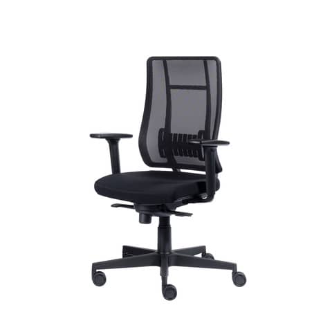 Poltrona semi-direzionale Liberty Syncro ergonomica con braccioli regolabili. Colore nero. Meccanismo Syncro regolabile in 4 posizioni con regolazione di tensione e sicurezza anti-shock. Schienale ergonomico a rete con poggiatesta, regolabile in inclinazione e con supporto lombare regolabile in altezza. Dimensioni ingombro 68x70x102 cm. Dimensioni sedile L. 49 x P. 44 cm, schienale L. 45 xH. 60 cm. Sedile imbottito ad alta densit? rivestito con tessuto ignifugo, regolabile in altezza da 40 a 54 cm e in inclinazione. Base D. 700 mm in poliammide caricato 30% FV certificata Ansi-Bifma. Ruote piroettanti D.65 mm. Sedile interno in multistrato di legno, imbottitura densit? 40 kg/m3 di spessore 35 mm. Carter in PP antigraffio nero. Schienale con struttura in poliammide nero. Peso 16 kg, portata massima 120 kg, utilizzo 8 ore/giorno. Rete 100% poliestere ignifuga CL1 I. Certificata EN 1335-1:2020 tipo A. Prodotto 100% Made in Italy. La garanzia – valida nell?ambito di un utilizzo normale e corretto della sedia e non si applica a quelle parti che sono naturalmente soggette ad usura, come i rivestimenti, le imbottiture e le superfici verniciate. La garanzia si applica a tutte quelle parti della sedia che ne garantiscono la funzionalit?, come ruote, base, gas, meccanismi. Una qualsiasi manomissione o tentativo di riparazione da parte di persone non specializzate fa decadere automaticamente la garanzia. Questa garanzia non riconosce alcuna responsabilit? o diritto di indennizzo per tutti gli eventuali danni, diretti o indiretti, causati da merce difettosa.