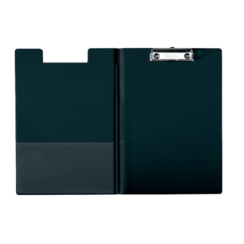 Portablocco con copertina, tasca interna e molletta di fissaggio. Cartoncino rivestito con polipropilene. Formato A4. Colore: nero.