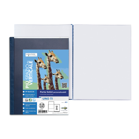 Portalistini in PP buccia, con copertina e retro personalizzabili. Il perfetto allineamento delle buste e la particolare saldatura facilitano la consultazione. Ideali per archiviare disegni, fotografie, stampe, posters, progetti e cartine geografiche. Formato: 25×35 cm. Composto da 15 buste. Colore blu.
