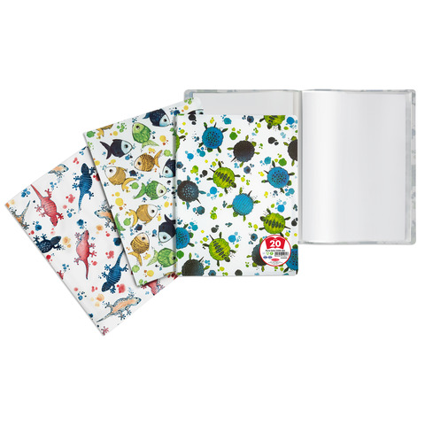 Porta listini Icon Sea realizzato in polipropilene lucido. Composto da 20 buste. Copertina flessibile con stampa in 3 soggetti assortiti. Imbustato singolarmente. Formato 22 x 30 cm. Interamente riciclabili.