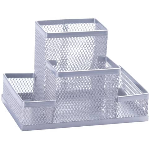 Portaoggetti da scrivania piccolo in finitura mesh. Dimensione 10,3x10x15,3 cm, 4 scomparti.