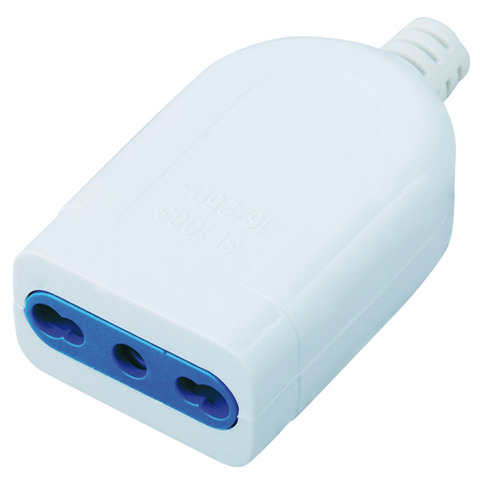 Presa di rete volante bipasso. Colore bianco. 2P+T bipasso 10/16A.