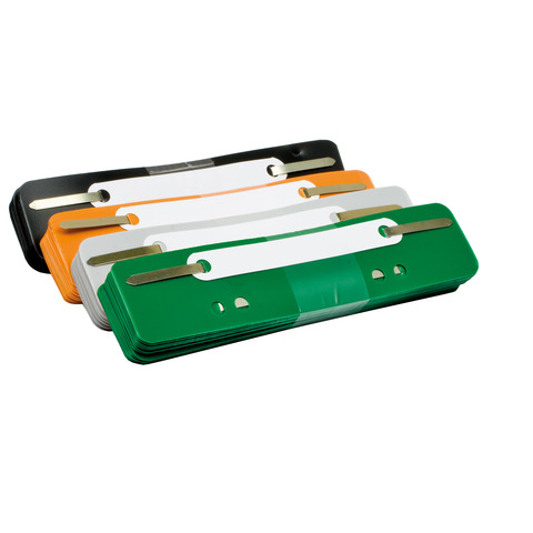 Pressino per rilegare fogli in ABS con linguette in metallo. Ideale per ogni tipo di rilegatura semplice. Confezione composta da 250 pezzi. Colori assortiti. Formato 38×150 mm.
