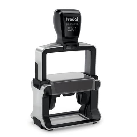 Timbro personalizzato TRODAT PROFESSIONAL 5204 4.0 – 56 x 26 mm – max 6 righe. Personalizzazione dell?impronta disponibile nei colori NERO, BLU, VERDE, ROSSO. Solida struttura in acciaio inossidabile. Impugnatura ergonomica per uso professionale. Massima qualità delle impronte. Inchiostro indelebile in conformit? alla norma DIN ISO 14145-2. Modello cartuccia di ricambio Trodat 6/56. Sostituzione della cartuccia più semplice e pulita. Semplice posizionamento dell’impronta. Prodotto eco sostenibile.