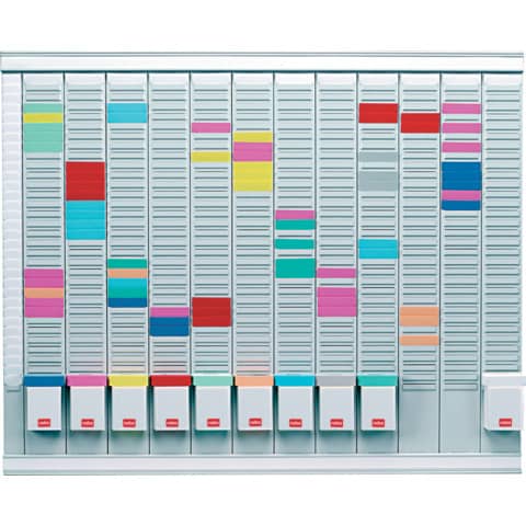 Il kit di pianificazione con schede a T contiene tutto ciò che occorre per creare un planner per 12 mesi duraturo ed efficiente, con la flessibilità di pianificare su base mensile, annuale o perfino per progetto. Contiene 12 pannelli da 32 slot dimensione 2, un pannello indice da 32 slot dimensione 1, 2 guide in alluminio con strisce colorate, 10 confezioni da 100 schede a T dimensione 2 in colori assortiti e una confezione da 100 cartoncini dimensione 1. Guarda i tuoi progetti a colori! Professional Planner con schede a T Nobo – 12 mesi Colore: .