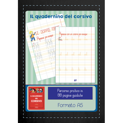 Quadernino del corsivo, ideale per accompagnare gli alunni dal pregrafismo fino alle forme più complesse. Composto da 88 pagine, formato: 15 x 21 cm. Colore copertina rossa.