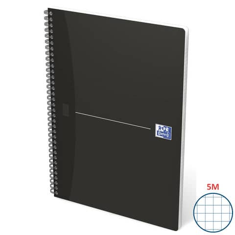 Quaderno spiralato OXFORD Office Essentials Maxi A4 nero quadretti 5 mm 100100759