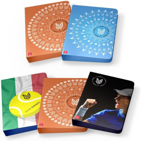 JANNIK SINNER, puro talento del tennis, una carriera destinata a grandi successi. Pigna contribuisce a raccontarne la storia, con una collezione interamente dedicata a uno dei migliori giocatori al mondo. Cartelle con meccanismo a 4 anelli; formato esterno 27 x 32 cm, formato utile A4 e dorso da 3 cm. Realizzate in cartoncino pesante e resistente, coloratissime, con logo Jannik Sinner e disegni ispirati al campione. Confezione composta da 5 pezzi in soggetti assortiti.