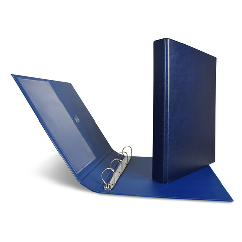 Raccoglitore in Colpan 2000? (cartone rivestito in PVC espanso) . Tasca interna trasparente. Meccanismo a 4 anelli D – 30 mm. Colore blu.