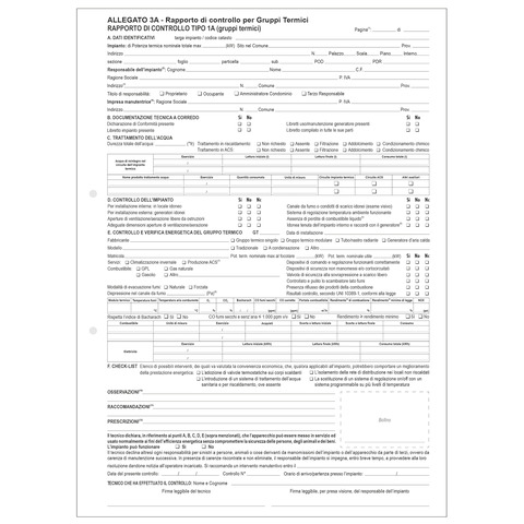 (Allegato 3A) – Rapporto di controllo tipo 1A gruppi termici. Snap a 3 copie con istruzioni