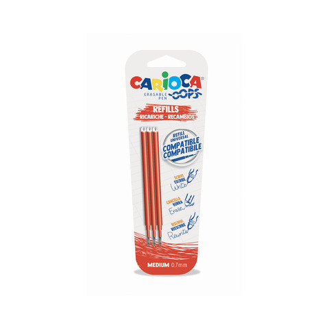 Refill penne cancellabili Carioca OOPS 0,7 mm in blister da 3 pz rosso 43041/03