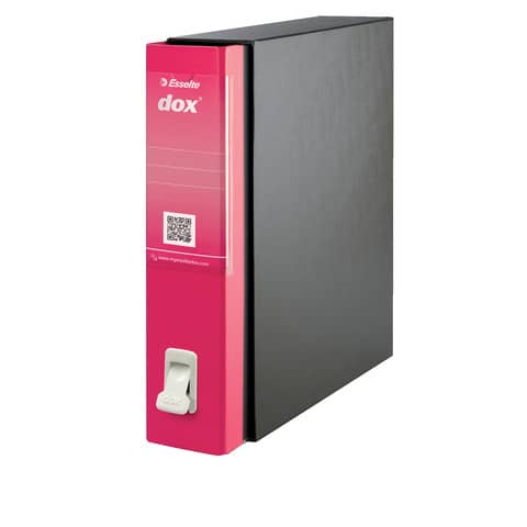 Il registratore a leva Dox 2 – rivestito con carta goffrata antimpronta e rifinito con paralati metallici alla base della plancia. E` dotato di un meccanismo a leva in acciaio nichelato con pressino, linguella di estrazione a scomparsa e portaetichette con etichetta reversibile. La custodia – rivestita con carta nera goffrata trattata antimpronta con interno nero. Ogni dox possiede al suo interno un volantino con il codice QR da applicare sull’ etichetta e 3 semplici indicazioni per come scaricare la app su App Store e Google play Dorso: 8 cm. Modello: Protocollo. Colore: fucsia.