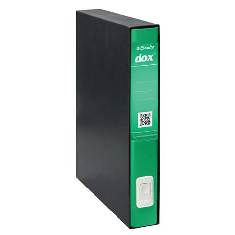 Il registratore a leva Dox 5 – rivestito con carta goffrata antimpronta e rifinito con paralati metallici alla base della plancia. E` dotato di un meccanismo a leva in acciaio nichelato con pressino, linguella di estrazione a scomparsa e portaetichette con etichetta reversibile. La custodia – rivestita con carta nera goffrata trattata antimpronta con interno nero. Ogni dox possiede al suo interno un volantino con il codice QR da applicare sull’ etichetta e 3 semplici indicazioni per come scaricare la app su App Store e Google play Dorso: 5 cm. Modello: Protocollo. Colore: verde.