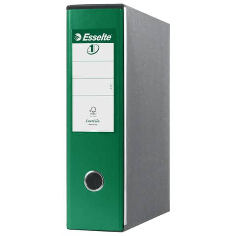 Eurofile è il prodotto ai vertici della gamma Esselte ed è caratterizzato dall?ottima qualità dei materiali impiegati e dall?elevato livello di finitura, che lo rendono una garanzia in termini di robustezza, funzionalita? ed eleganza. Date le sue caratteristiche, questo registratore è ideale per un uso intensivo. Prodotto in robusto cartone da 2 mm, rivestito sia internamente che esternamente in polipropilene incollato su entrambi i lati, si contraddistingue per l?ampia etichetta che facilita la scrittura. Disponibile anche in gruppi in quattro diverse soluzioni appositamente studiate per consentire l?archiviazione per soggetto o per affinita? di argomento. Dorso: 8 cm. Modello commerciale. Colore: verde.