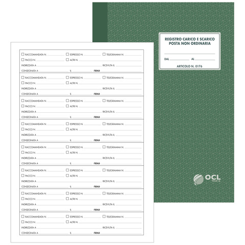 Registro di carico/scarico posta non ordinaria O.C.L. (per portinai) – 40 fogli – 0176