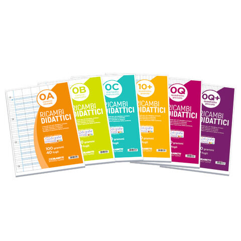 Ricambi Didattici per quaderni ad anelli con banda rinforzata in PVC antistrappo. Studiati appositamente per disgrafia. Sono realizzati in formato A4 in carta da 100 grammi. 40 fogli. Questo articolo – prodotto con energia solare, – certificato Federottica ed – testato e approvato dall?Associazione Europea Disgrafie.