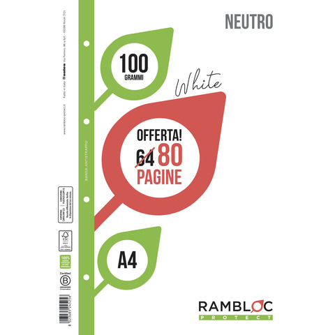 Ricambio quaderni ad anelli Rambloc formato A4 -32 ff +8 ff bianco 90524351