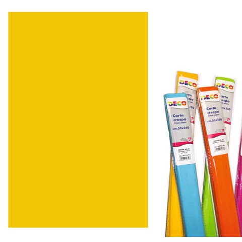 Rotolo di carta crespa. Resistente ed elastica supporta egregiamente ogni tipo di collante. Formato 50×250 cm, grammatura 40 g/m². Il prodotto – classificato come non pericoloso in accordo con il Sistema armonizzato a livello globale per la classificazione ed etichettatura (GHS).