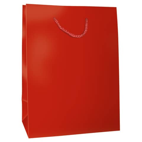 Sacchetti da regalo tinta unita rosso opaco con manici in corda abbianti. Sacchetto perfetto per completare i vostri regali natalizi. Realizzato con materiali di prima scelta. Dimensioni 18x23x10,5 cm. In carta da 180 gr/mq. In confezione da 6 sacchetti.