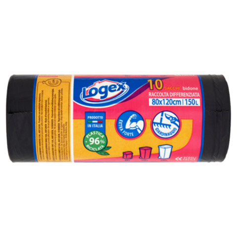 Sacchi immondizia neri Logex per la raccolta differenziata 80×120 cm – conf. 10 pz – 150 L – C4LX-0417