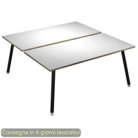 Scrivania bench doppia piano bianco 120x166xH.74,4 cm gamba metallo tubolare nero opaco Skinny Metal 6404B-DJA-3C-AQ