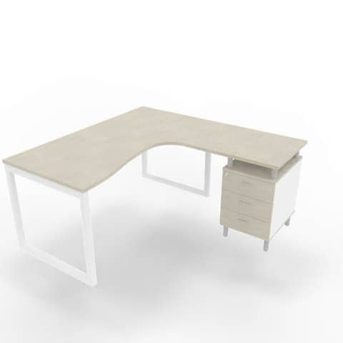 Scrivania con cassettiera a destra piano cemento 160x165xH.75 cm gamba ad anello acciaio bianco Practika P2 ECSAT17D-CL-I